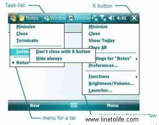 ![]() Хороший менеджер задач и лончер. Обновление от 15.11.07 до версии v1.1.0.1 Позволяет минимизировать/закрывать проги по крестику, добавлять их в исключения. Показывает запущенные проги в верхнем баре. Встроенный лаунчер позволяет добавить до 12 ярлыков Дополнительные функции: отключение экрана, поворот экрана, перезагрузка, включение/отключения gprs-коннекта. Есть управление подсветкой и громкостью. Версия мультиязычная, русский присутствует. Совместимость:WM2003-WM6 Скачать ЗДЕСЬ |