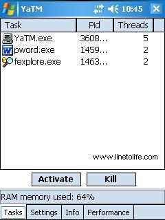 YaTM - компактный и быстрый менеджер задач. Показывает загрузку процессора и памяти, позволяет закрыть задачи, а также вывести их в активный режим из фонового