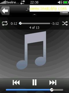 - Находясь в окне воспроизведения, нажмите на экран, чтобы вывести индикатор прогресса. Там же нажмите на левом значке для повторного воспроизведения текущего альбома, а на правом для хаотичного воспроизведения плейлиста. Когда нажаты оба значка только текущий альбом будет играть в хаотичном порядке;
