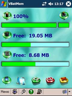 VBatMem - самозакрывающаяся программа для показа памяти, батарей, быстрого изменения уровня подсветки, удаления ненужных процессов и многого другого...