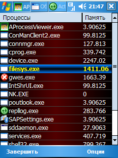 ![]() Обновление AProcessViewer 0.98.4Build101. Приложение AProcessViewer позволяет просматривать запущенные программы и занимаемую ими память, а так же с ее помощью можно получить полную информацию о выбранной программе. AProcessViewer умеет менять приоритет программы (особенно актуально для КПК со слабым процессором), а так же есть функция сжатия оперативной памяти (RAM), которая позволяет увеличить кол-во ОЗУ (WM5.0 или выше), ярлык для очистки можно создать в меню "Пуск". Возможности: Просмотр запущенных процессов и занимаемой ими памяти Просмотр информации о процессе (путь к ЕХЕ файлу процесса, кол-во потоков, модулей и список всех используемых модулей с их путями) Завершение выбранных процессов Установка класса приоритета для выбранного процесса Сжатие динамической памяти процесса (WM 5.0 или выше) Освобождение оперативной памяти КПК Инфориация о кол-ве освобождённой памяти в виде окна или звукового оповещения. Изменения: - исправил "косяк" прошлой версии при изминении приоритета выскакивало сообщение об ошибке - устранил небольшую утечку ресурсов которая наблюдалась в прошлых версиях Русский интерфейс. Скачать AProcessViewer0.98 |