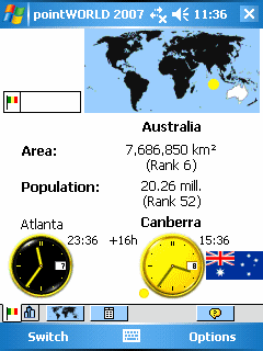 pointWORLD – это не только энциклопедия, но и целый обучающий комплекс с функцией проверки знаний. pointWORLD содержит данные о флагах, столицах, городах, территориях, численности населения всего мира и многое другое!