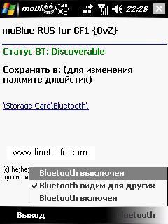 Решение проблемы – небольшая утилита moBlue от hejhej.org, которая подменяет собой стандартный клиент Windows Mobile для приема файлов по беспроводной связи и позволяет сразу же принемать файлы на карту памяти.