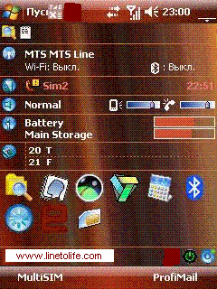 Менеджер профилей, который позволяет Вам активизировать звуковые профили, профили переадресации звонков, статус Bluetooth и статус flight mode по времени и дате, которое Вы хотите. Например, Вы можете переадресовать все звонки с коммуникатора на телефон офиса в каждый будний день в 9am. Строка на Today, отображающая информацию о названии сети, последнего звонка, батареи, памяти, тревогах и пр.