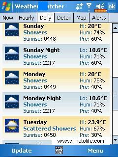 Персональная погодная станция для мобильных устройств - смартфонов и Pocket PC. Weather Watcher Mobile автоматически получает текущее состояние погоды, прогноз на час или день, детальный прогноз. Кроме этого утилита извещает о погодных катаклизмах, информацию о которых предоставляет National Weather Service (только для США), а также показывает масштабируемые карты с радаров и спутников для более чем 77 тысяч городов по всему миру. Используя Weather Watcher Mobile на своих мобильных устройствах, вы всегда будете в курсе прогнозов погоды на 10 дней вперед.