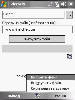 Программа позволяющая быстро выгрузить файл в Интернет. Суть программы такова: выбираете файл, нажимаете кнопку "выгрузить файл" и получаете ссылку на него, после чего можете использовать ее на форумах, чатах, давать друзьям и знакомым.