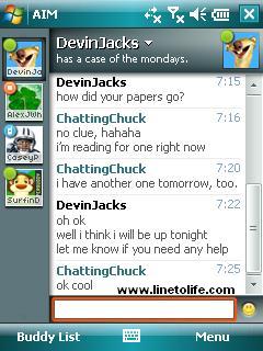 Обновляйте свой AIM статус и информацию на ходу. Меняйте стиль общения, управляйте контакт-листом и т. д. AIM Windows Mobile выполняет многие ключевые функции и имеет такой же внешний вид, что и клиент для десктопа.